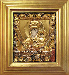 Ра́дуйся, я́ко на ико́ну Твою́ взира́юще, Само́й Тебе́, и́стинней Богоро́дице, поклоня́емся; ра́дуйся, Твои́м предста́тельством вся́ блага́я жела́ния на́ша ско́ро исполня́ющая.