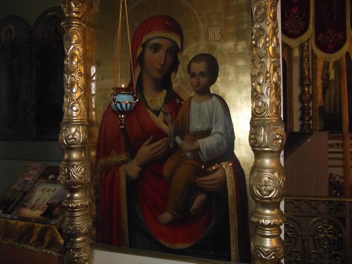 Благочестно отвсюду, о Богомати, к пречестней Твоей иконе притекающия, и усердно покланяющияся, и верно везде Тя призывающия предвари, от бед всяких спасающи, и лютых недуг избавляющи, и духи лукавыя прогоняющи, тишину и здравие подающи всем, Владычице.