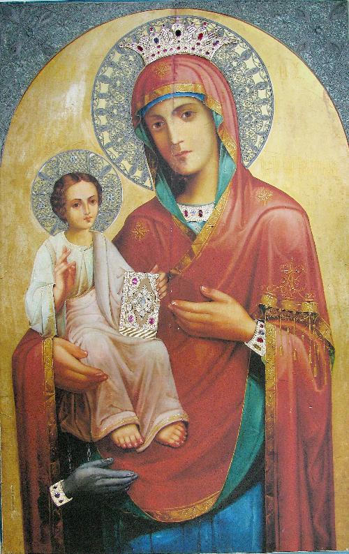 Очи сердец наших воспущаем к Тебе, Владычице, егда взираем на чудотворную икону Троеручицу, буди нам держава и ограждение и Вышняго причастия сподоби нас.