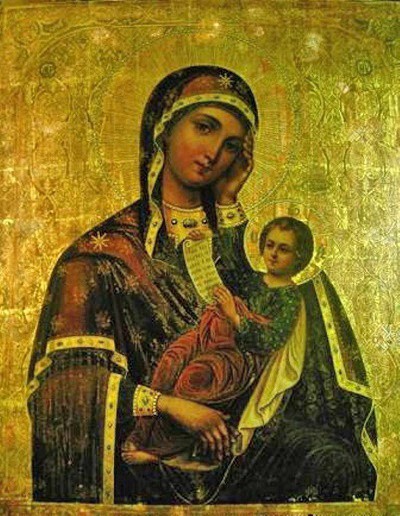 Наде́ждо всех конце́в земли́, Пречи́стая Де́во, Госпоже́ Богоро́дице, утеше́ние мое́! Не гнуша́йся мене́, гре́шнаго, на Твою́ бо ми́лость упова́ю: угаси́ ми пла́мень грехо́вный и покая́нием ороси́ изсо́хшее мое́ се́рдце, очи́сти ум мой от грехо́вных помысло́в, приими́ мольбу́, от ду́ши и сердца́ со воздыха́нием приноси́мую Тебе́. Бу́ди о мне Хода́таица к Сы́ну Твоему́ и Бо́гу и укроти́ гнев Его́ ма́терними Твои́ми моли́твами, душе́вныя и теле́сныя я́звы исцели́, Госпоже́ Влады́чице, утоли́ боле́зни ду́ши и те́ла, утиши́ бу́рю злых нападе́ний вра́жеских, отъими́ бре́мя грехо́в мои́х, и не оста́ви мене́ до конца́ поги́бнути, и печа́лию сокруше́нное се́рдце мое́ уте́ши, да сла́влю Тя до после́дняго издыха́ния моего́. Ами́нь.