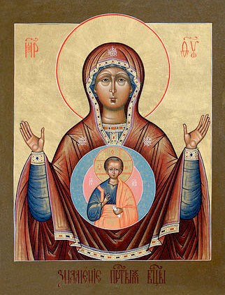 Икона Божией Матери, именуемая "Знамение". Знамение Пресвятой Богородицы, бывшее в Новгороде Великом в 1170 году.