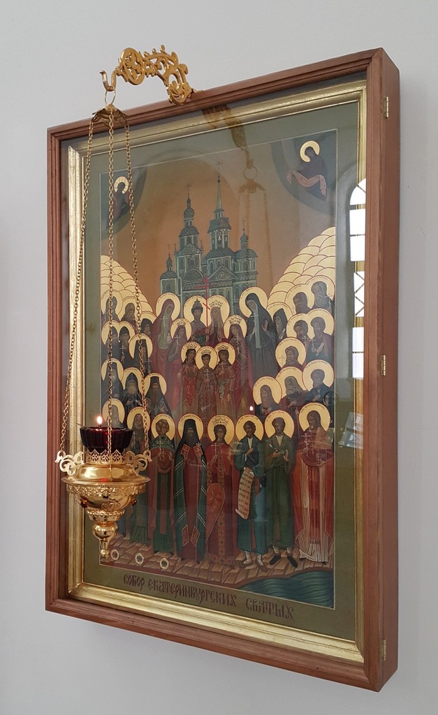 Икона святых, включая местночтимых, на которой изображены святые, имеющие отношение к Екатеринбургской епархии, и подвизавшиеся в ней. В икону вделаны частицы мощей священномучеников Красноуфимских: Льва Ершова, Александра Малиновского и Алексия Будрина, пострадавших за Христа в 1918 году. Святые расположены на фоне Екатеринбургского Екатерининского собора, разрушенного коммунистическими властями.