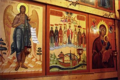 К 190-летию Отечественной войны 1812 года в местном ряду иконостаса появилась икона, какой прежде в Можайске не существовало – «Можайские святые». На ней изображены стоящими «на воздусех» над святыми храмами Можайской земли: покровитель города святитель Николай Мирликийский с мечом и градом в руках; святители Макарий, митрополит Московский, и новомученик Димитрий, архиепископ Можайский; новомученик протоиерей Константин; благоверные князья Феодор Смоленский и Димитрий Донской, начинавшие некогда княжить в Можайском уделе; преподобные Ферапонт Можайский и Рахиль Бородинская. Над святыми изображены два ангела, несущие явленную в 1413 году вблизи Можайска Колоцкую икону Божией Матери.