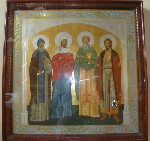 Икона преподобного Серафима Вырицкого, блаженной Ксении Петербургской, праведного Иоанна Кронштадтского, благоверного князя Александра Невского с частицей мощей благоверного князя Александра Невского