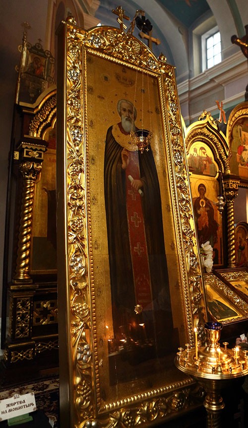 Икона преподобного Сергия Радонежского с частицей мощей.
