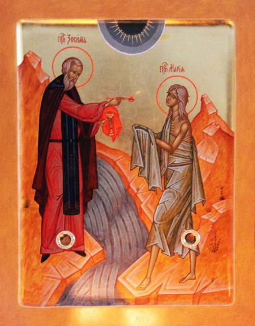 Икона преподобных Зосимы Палестинского и Марии Египетской с частицами мощей
