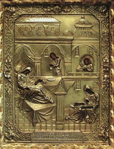 Благодать Божия преисполни Тя в рождестве Твоем, Благодатная, юже иконою Своею выну изливаеши нам, с верою прибегающим к заступлению Твоему и благодарственная Милосердному Богу приносящим: Аллилуиа.