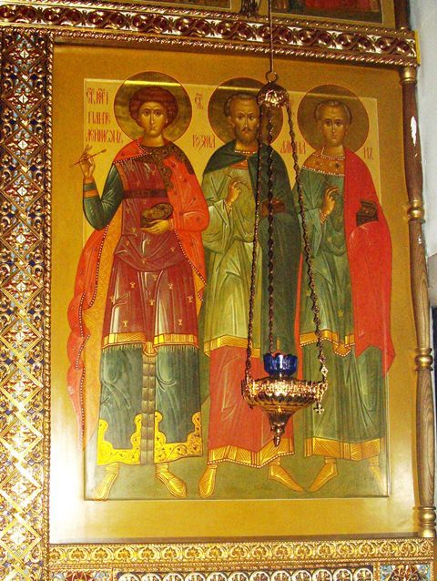 Икона трех целителей великомученика Пантелеимона, бессребренниковКосьмы и Дамиана.