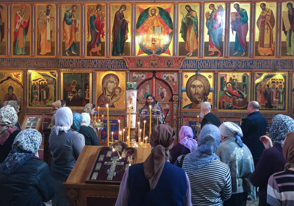 Почитаемая храмовая икона святого великомученика Георгия Победоносца поставлена в местный чин нового иконостаса в центральной части храма.