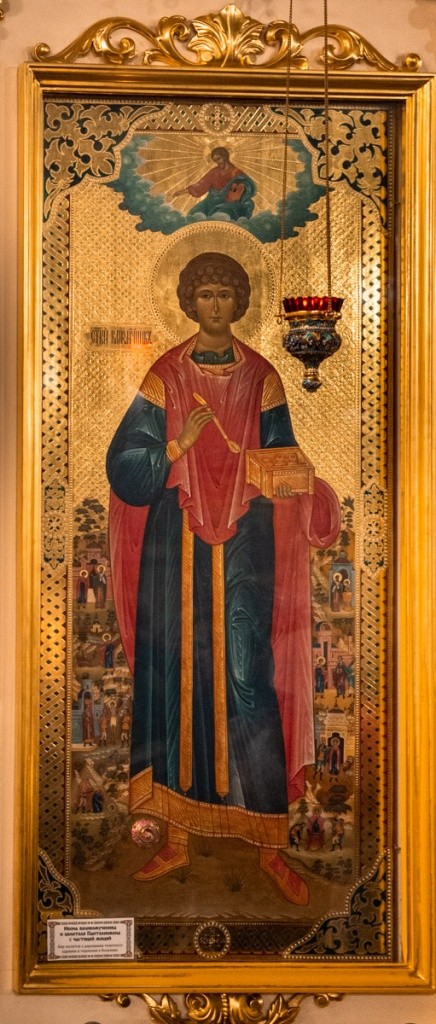 Икона великомученика и целителя Пантелеймона с частицей мощей