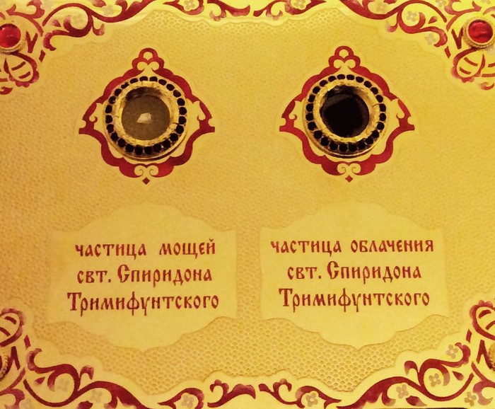 Ковчег с частицей мощей и частицей тапочка святителя Спиридона Тримифунтского.