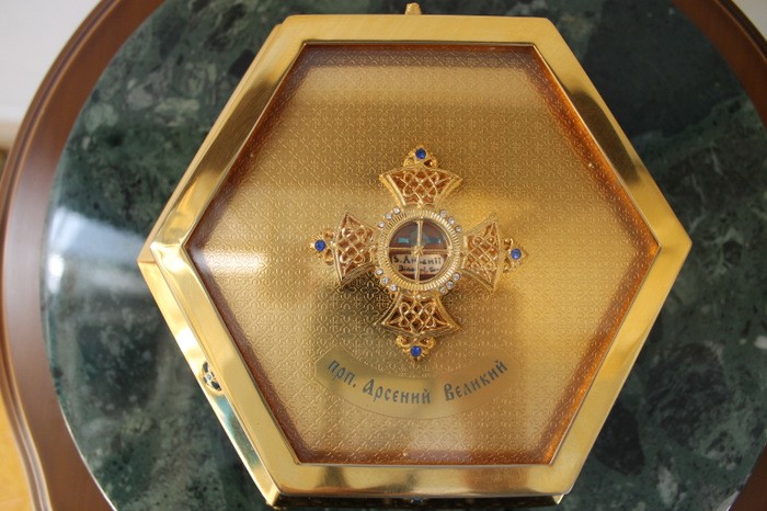 Ковчег с частицей мощей преподобного Арсения Великого.