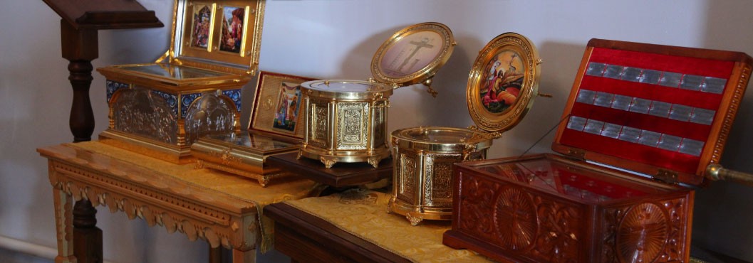 Часть древа, на которым был распят Христос Спаситель и гвоздь с частицей одного из гвоздей, которым Христос был пригвожден ко кресту.