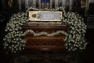Отец Феодосий Левицкий, сын священника, родился 11 января1791 года. По окончании курса Подольской Духовной семинарии в 1815 году рукоположен во священника Балтской Никольской церкви. В 1818году о. Феодосий овдовел потеряв одновременно супругу и родившегося сына. Утратив самых близких людей, после смерти матери и отца он всецело отдает себя Богу на служение, объятый любовью и состраданием к ближним о.Феодосий открывает в г. Балта странноприимную. В 1823 году после представления императору Александру Благословенному своего сочинения о страшном суде был вызван государем в Петербург. Император так благоволил священнику Феодосию слушая его поучения и проповеди, что назначил его своим духовником. В 1824 году по зависти и клевете придворных врагов отец Феодосий был заточен в Коневецкий монастырь, где провел в заключении три года. По освобождении в 1828 году он возвратился в город Балту и занялся обустройством странноприимного дома, с целью основать со временем в ней иноческую обитель. За всю свою земную жизнь святой праведный старец Феодосий стяжал любовь у верующих людей за свою простоту и сострадание к нищим и обездоленным, а также своей горящей и пламенной молитвой. Скончался о.Феодосий 22 марта н.с. 1846 года и погребен на кладбище около своей супруги и сына. В 1909 году с разрешения Святейшего Синода останки его перенесены с кладбища в крипту (пещеру) Троицкого храма основанного в его память Покровско Балтско-Феодосиевского монастыря. После закрытия обители в 1923году мощи снова были возвращены на кладбище. В 1997 году по благословению Митрополита Одесского и Измаильского Агафангела мощи были второй раз обретены и положены в раку в Успенском соборе г. Балты. В 2009 году о. Феодосий был причислен к лику святых и чин канонизации состоялся при многочисленном стечении верующих. Божественную Литургию возглавил почивший Блаженнейший Митрополит Киевский и всея Украины Владимир в сослужении сонма архиереев. В 2011 году состоялось торжественное перенесение святых мощей о. Феодосия в возрожденный Свято-Покровский Балтско-Феодосиевский мужской монастырь, в котором он молитвенно и телесно почивает и поныне. По молитвам угодника Божия монастырь возрождается и все приходящие поклонится его святым останкам чувствуют его покровительство и благодатную помощь.