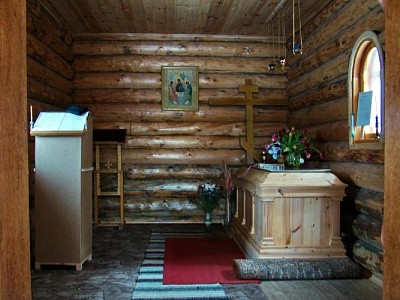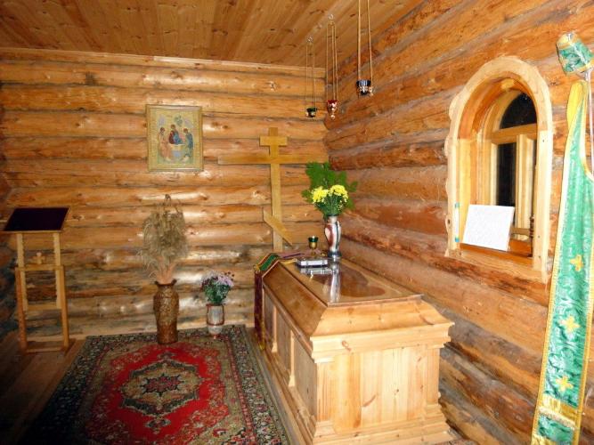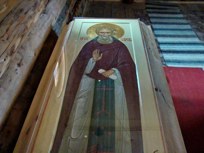 Мощи преподобного Павла Обнорского под спудом в часовне в его честь