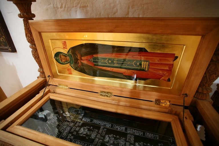 31 июля 2002 года Старицким Свято-Успенским монастырем были обретены святые мощи местночтимой схимонахини Пелагии (Ланяевой). принявшей мученическую смерть около 1609 года и похороненной в церкви Вознесения г. Старицы. Они были отправлены на экспертизу в Свято-Данилов монастырь и после окончания исследования вернулись в Старицу 11 января 2003 года. Сохранившийся фрагмент кожаной сандалии во время исследования в развернутом виде принял форму женской головы в скуфье. Он был положен в киот с частицей мощей святой и сейчас находится Успенском соборе.