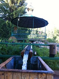 Сам источник представляет собой округлый водоем, обложенный тесаным гранитом в 1878 году накрытый сверху шатровым куполом. Большие размеры водоема обусловлены мощным потоком воды, бьющим со дна колодца. Сила потока такова, что может удерживать на весу небольшие брошенные камни. Вытекающая вода разделяется на два потока – мощная струя отведена по желобу для желающих попить, умыться или наполнить водой емкости. Основной же поток выходит в купальни и дальше в речку Пыршню.