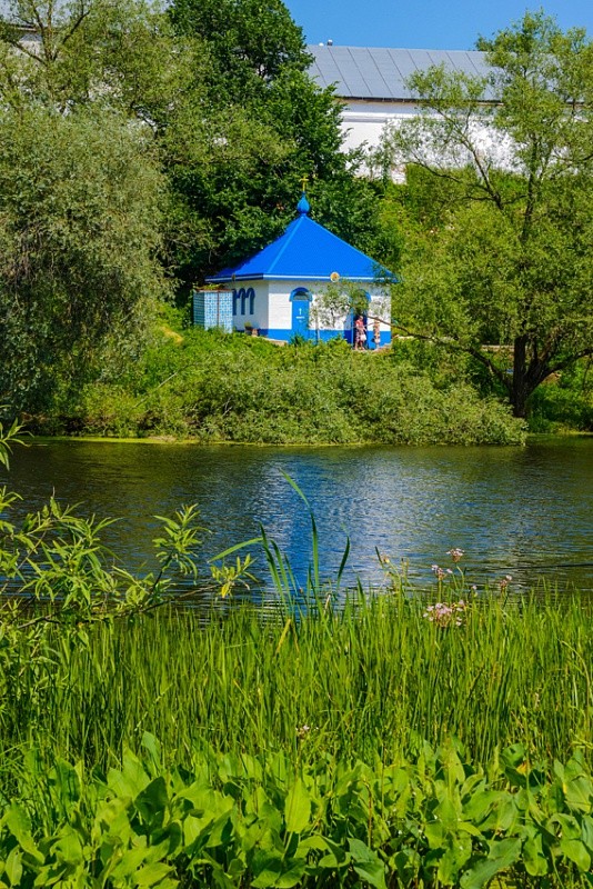 На южной стороне холма, на котором расположен монастырь, находится сам святой источник и две купели, мирская и монастырская.