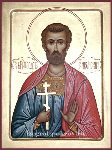И нравом причастник,/ и престолом наместник апостолом быв,/ деяние обрел еси, богодохновенне,/ в видения восход,/ сего ради, слово истины исправляя,/ и веры ради пострадал еси даже до крове,/ священномучениче Феодоте,/ моли Христа Бога// спастися душам нашим.