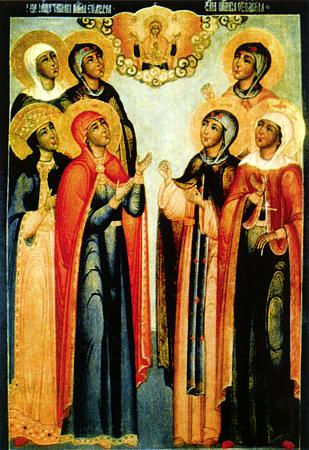 Радуйся, яко тело твое источи благоухание неба; радуйся, урезанными сосцы воскормившая сонмы мучеников за Христа.