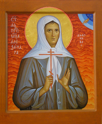Преподобномученица Александра родилась в 1893 году в селе Черноголовка Ивановской волости Богородского уезда Московской губернии в семье крестьянина Ивана Дьячкова. Александра окончила сельскую школу и жила вместе с родителями, помогая им по хозяйству. В 1914 года она поступила послушницей в Свято-Троицкий Александро-Невский монастырь в Клинском уезде Московской губернии неподалеку от села Акатово, почему и монастырь зачастую называли Акатовским. Он был открыт в 1890 году, сначала как община, а в 1898 году получил статус монастыря с общежительным уставом. В обители было в то время два храма, две гостиницы и странноприимный дом. Всего здесь подвизалось около семидесяти сестер.Придя к власти, безбожники потребовали закрытия монастыря, и сестры преобразовали его в сельскохозяйственную артель, которой по-прежнему руководила игумения. Но в 1927 году безбожники стали закрывать все артели, где подвизались монахини. Монашеская трудовая община в селе Акатове была разогнана, а игумения арестована. Послушница Александра вернулась на родину в село Черноголовку и поселилась в родительском доме. Однако любовь к обители, где было положено начало иноческих трудов, была столь велика, что Александра вновь уехала в Акатово и поселилась в одной из деревень вблизи монастырских стен. С 1930 года надзор за монахинями, жившими вблизи закрытых обителей, усилился, ожесточились направленные против них репрессии, и Александра снова возвратилась в родительский дом. Сельская их церковь к этому времени лишилась пастыря, и Александра стала активно хлопотать о назначении к ним священника, что в конце концов ей удалось, и она взялась обустроить его жизнь на новом месте.Сотрудники ОГПУ в это время принялись за аресты духовенства и иноков закрытых обителей. 21 мая 1931 года в числе других монашествующих была арестована и заключена в тюрьму в городе Ногинске и Александра. Были допрошены свидетели; один из них показал, что «Дьячкова распространяет нелепые слухи о нашем колхозе, говоря, что у нас колхозники голодные, скот дохнет, молоко сдают, а дети умирают с голоду... Дьячкова активный организатор... религиозных праздников»[1].Послушнице предъявили обвинение в агитации против колхозного строительства, что в «1930 году в момент перевыборов сельсоветов она говорила: “Все равно в колхоз никто из честных крестьян не пойдет: там собираются одни лодыри, которые не хотят работать, — пусть коммунисты с ними работают”»[2].Вызванная на допрос, послушница Александра сказала, что она действительно в течение многих лет подвизалась в монастыре и ушла из него только после того, как он был закрыт, а игумения арестована. А что касается предъявленного обвинения, то «агитации против колхозов я не вела», — заключила послушница.29 мая 1931 года тройка ОГПУ приговорила послушницу Александру к пяти годам заключения в исправительно-трудовом лагере, и она была отправлена на строительство Беломорско-Балтийского канала.В 1934 году Александра Ивановна была освобождена и поселилась в родном селе; в том же году скончалась ее мать, и, прожив около полутора месяцев дома, она уехала в Волоколамский район, где меньше была вероятность подвергнуться аресту как отбывшей лагерный срок и поселившейся вблизи Москвы. Александра Ивановна жила у своих знакомых в разных деревнях, подрабатывая той или иной поденно