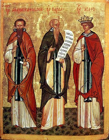 Звезды светлее явися миру житие твое, преподобне отче Афанасие: ты бо сам шествуя путем тесным и скорбным, право ведущим в Царствие Небесное, и иных многих научал еси творити волю Господню и представил еси тех Христу Богу добродетельми сияющих, поя с ними: Аллилуиа.