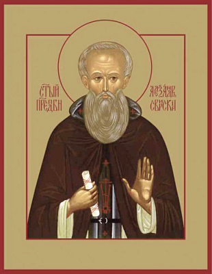 Стопам последуя, преподобне и Богоносе, Владыки Христа, благочестно пожив на земли, кроток, незлобив явился еси, милостив и смирен, Александре, и любве исполнен Божественныя, сего ради тя верно восхваляем.