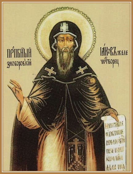 Избранный чудотворче, и предивный угодниче Христов Иакове, источаяй неоскудно исцеления приходящих к тебе с верою, с любовию похвальная восписуем ти, преподобне; ты же, яко имеяй дерзновение ко Святей Троице, от всяких нас бед твоими молитвами избави, и вся полезная испроси зовущим ти: радуйся, Иакове, богомудре отче наш.