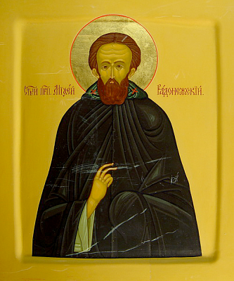 Однажды в глубокую ночь преподобный Сергий совершал свое келейное правило и перед иконою Богоматери пел акафист, что он делал, по своему обычаю, ежедневно. Часто взирал он на святую икону и усердно молил Матерь Божию о своей обители. «Пречистая Мати Христа моего, – взывал святой старец, – Ходатаица и Заступница и крепкая Помощница роду человеческому! Буди и нам недостойным Ходатаицей, присно моли Сына Твоего и Бога нашего, да призрит Он милостиво на святое место сие, посвященное в похвалу и честь Его святого имени на веки! Тебя, Матерь Сладчайшего моего Иисуса Христа, призываем на помощь, рабы Твои, ибо Ты имеешь великое дерзновение у Сына Твоего и Бога! Будь же всем спасительное упокоение и пристанище!»