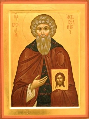 Преподобный Василий исповедник был иноком и пострадал в царствование иконоборца Льва Исавра (717 - 741). Когда началось гонение на почитателей святых икон, святой Василий вместе со своим сподвижником преподобным Прокопием (память 27 февраля) был предан многим истязаниям и заключен в темницу, где оба мученика томились долгое время, до самой смерти нечестивого императора. Когда святых исповедников Василия и Прокопия освободили вместе с другими почитателями святых икон, они продолжили свой иноческий подвиг, наставляя многих в православной вере и добродетельной жизни. В 750 году преподобный Василий мирно скончался.