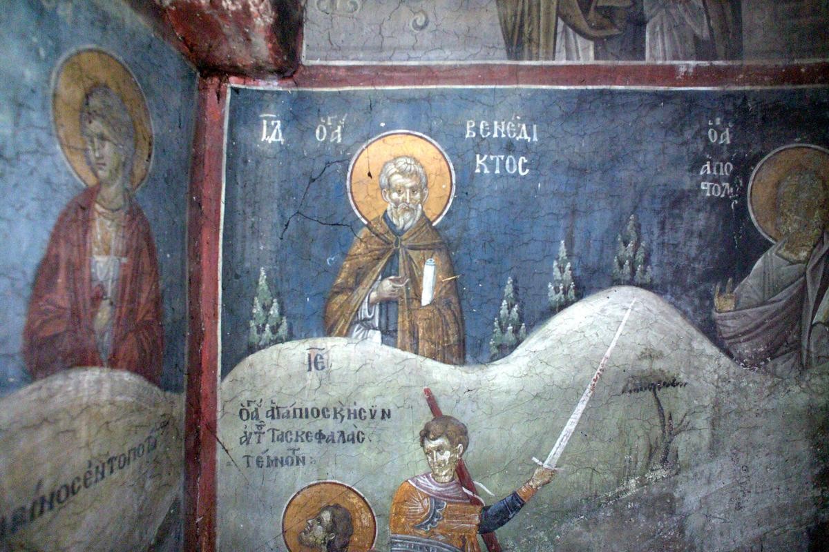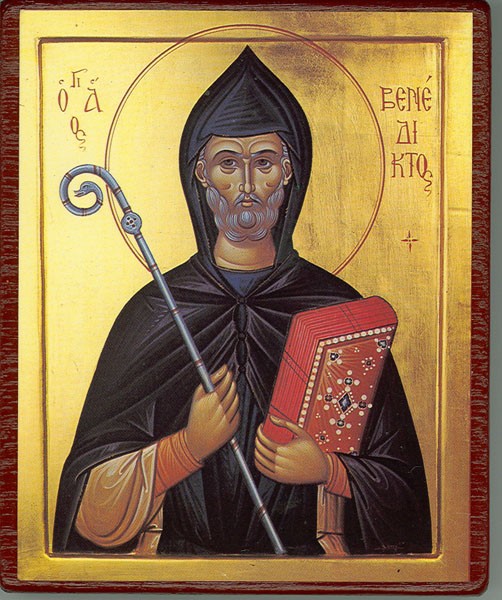 Возгоревся рачением Горним и Святым Духом,/ вся просветил еси, отче преподобне Венедикте священне,/ непрестанно моли Христа Бога, преблаженне, о всех нас.