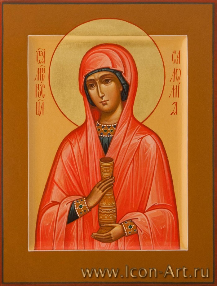 Родом из Галилеи, жена Зеведея, мать апостолов Иакова и Иоанна. Когда они последовали за Христом, Саломия присоединилась к обществу жен, которые служили Ему.