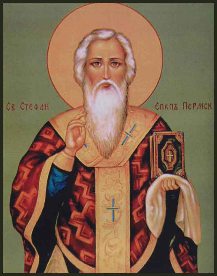 В 1383 году святой Стефан был поставлен епископом Малой Перми. Как любвеобильный отец он неустанно заботился о своей пастве. Для утверждения в вере новообращенных святитель Стефан при храмах открывал училища, где священные книги изучались на пермском языке. Святитель присматривался к учащимся, учитывал их способности с тем, чтобы из них ставить священников и диаконов. Некоторых учеников святитель Стефан научил писать по-пермски. Святитель строил церкви, в которых ставил священников из зырян, ввел богослужение на зырянском языке.