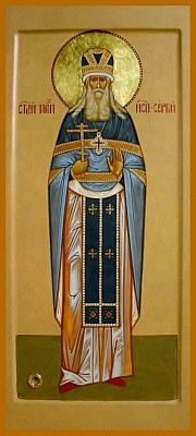 Издетска монашескую жизнь возжелал еси, преподобне отче Сергие, в нейже любовь Христову стяжав, пастырь добрый многим людем был еси, последи же и изгнание претерпев, венцем исповедничества украсился еси. И ныне, предстоя престолу Святыя Троицы, непрестанно моли просветити и спасти души наша.