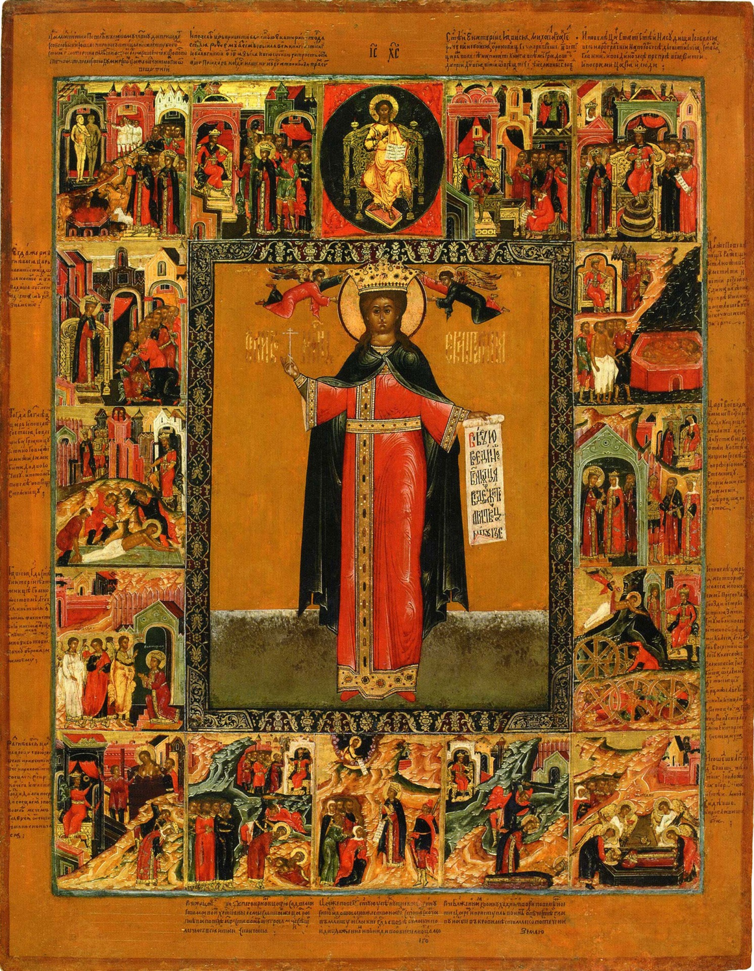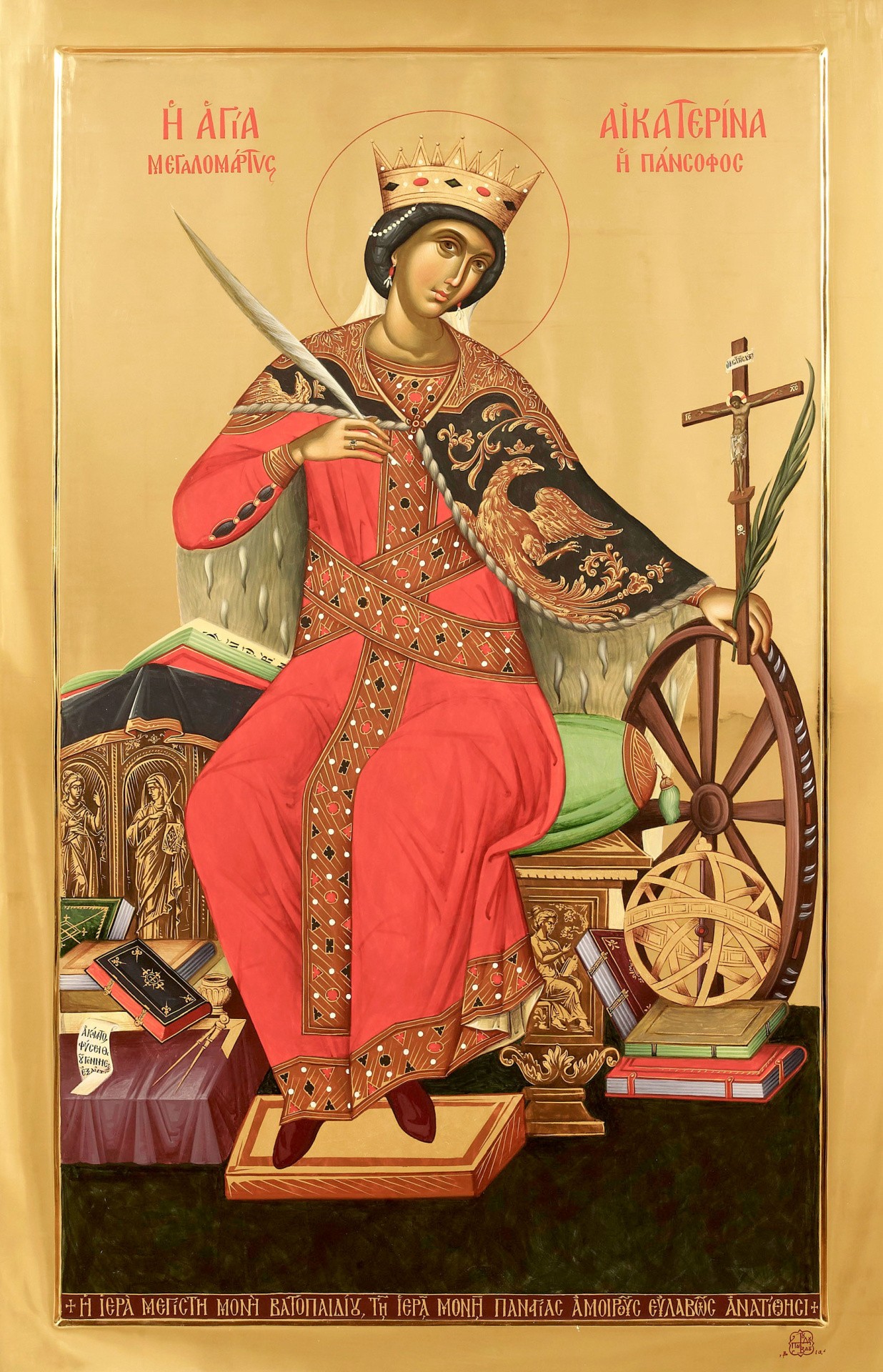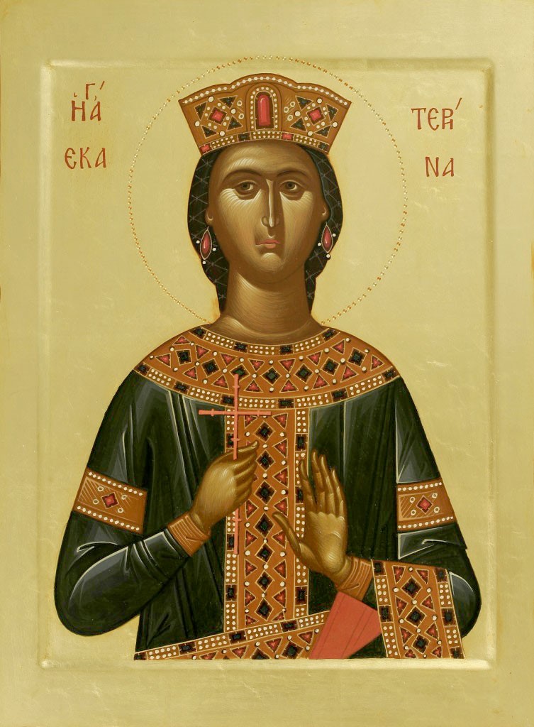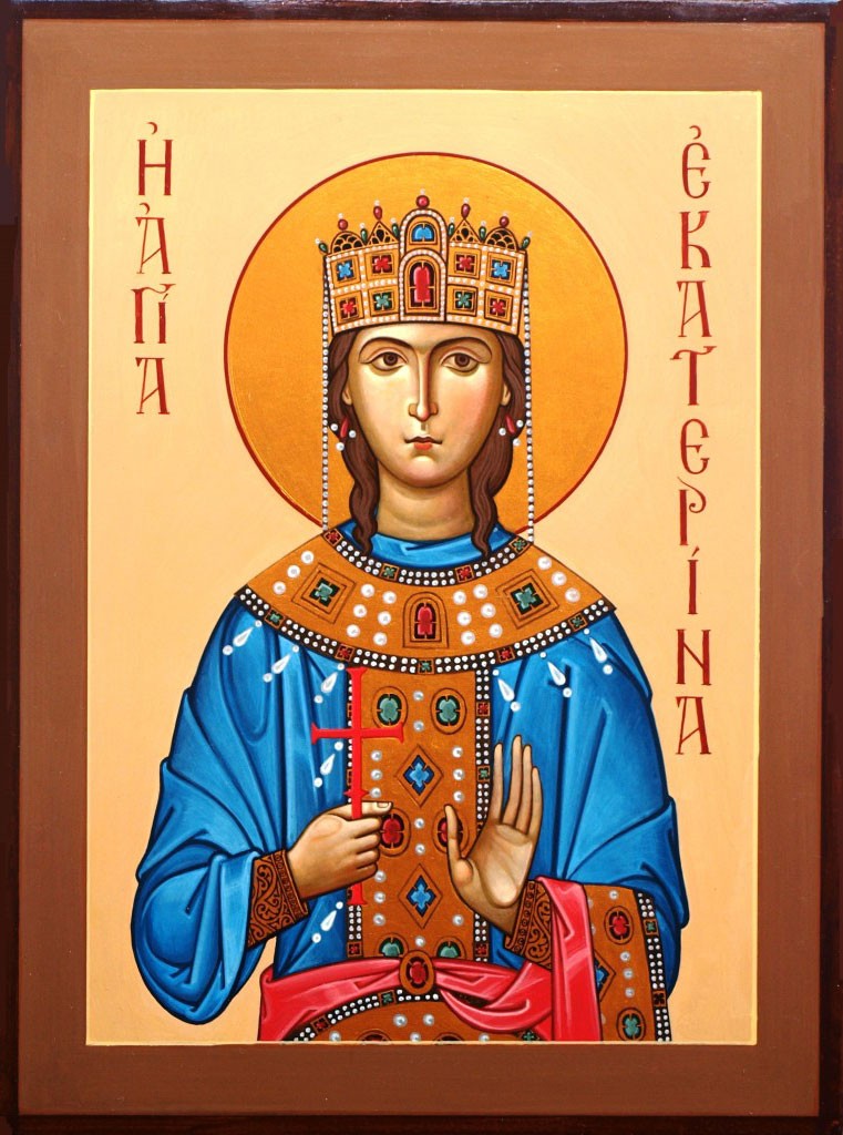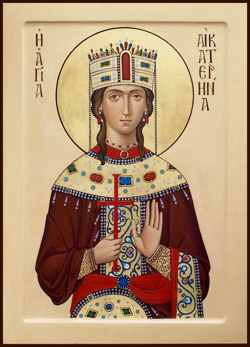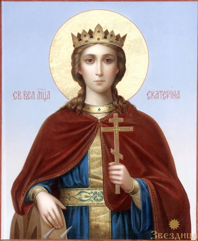 Святая Екатерина родилась в Александрии во второй половине третьего столетия. Происходила она из знатного рода и отличалась светлым умом, ученостью и красотой. Многие богатые и знатные женихи искали ее руки, а мать и родные уговаривали ее согласиться на брак. Но Екатерина медлила с ответом и говорила своим близким: «Если хотите, чтобы я вышла замуж, то найдите мне юношу, подобного мне по красоте и учености».