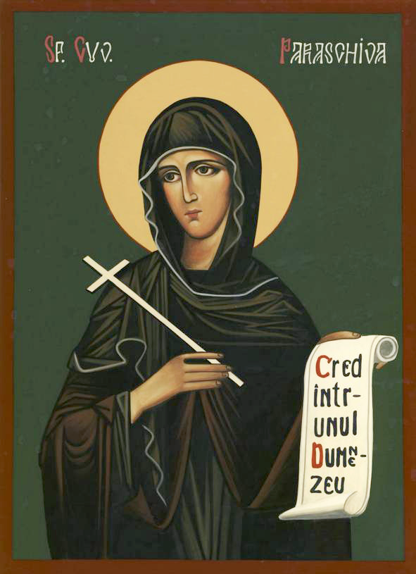 Эта славная святая родилась у богатых и благочестивых сербских родителей. После смерти отца Параскева покинула дом вместе со своим братом, святителем Евфимием, стремясь к подвижнической жизни. Вначале она отправилась в Константинополь, а затем в Иорданскую пустыню, где подвизалась до преклонных лет. Ангел явился ей и повелел вернуться домой. Ее брат, проживший тридцать лет в монастырской тиши, стал к этому времени епископом Мадитоса; и в конце жизни они вместе трудились о Господе. Мощи преподобной Параскевы находятся в Румынии. Тысячи людей собираются в день празднования ее памяти. В Белграде сохранился чудотворный источник, доныне приносящий многим исцеление. Мироточивые мощи ее брата являются неоскудевающим источником и до наших дней.