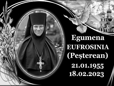 18 февраля 2023 года, на 69-м году жизни, преставилась ко Господу настоятельница Каларашовского Успенского женского монастыря Единецкой епархии игумения Евфросиния (Пештерян).