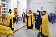 По окончании богослужения митрополит Варсонофий зачитал всем присутствующим послание Святейшего Патриарха Московского и всея Руси Кирилла и поздравил с праздником: