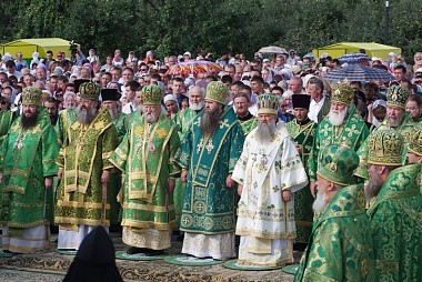 «Сегодняшний праздник – великая радость, на которой сбывается пророчество преподобного Серафима Саровского, когда мы среди лета поем Пасху. В этом году мы отмечаем также 700-летие преподобного Сергия Радонежского. Преподобный Сергий и преподобный Серафим – два крыла духовной монашеской жизни, которые обнимают весь русский народ. Когда наш народ перестает чтить свои корни, свои традиции, наступают смутные времена, но, когда люди просветляются сердцем и очищаются умом, наступает тихое благодатное житие во всяком благочестии и чистоте».