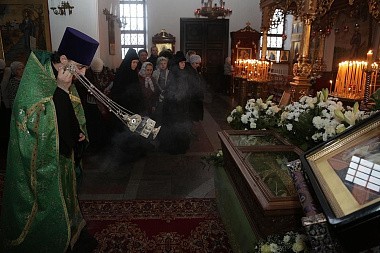 В этом храме пребывают мощи преподобного Василиска Сибирского, великого молитвенника Уральской земли, 65 лет подвизавшегося в пустынных лесах. Для жителей Урала и Сибири святой старец Василиск, молитвы которого еще при его жизни были подобны пламенному столпу от земли до неба, был и остается ходатаем и заступником во всех скорбях и невзгодах.