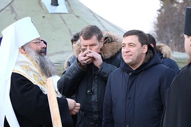 Затем почетные гости Верхотурья направились в скит Актай – подворье Свято-Николаевского мужского монастыря. Здесь губернатор и митрополит Кирилл посетили пункт временного размещения беженцев с Украины, после чего на реке Актай была освящена Крещенская иордань.