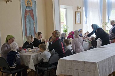 По окончании богослужения гостям была предложена трапеза, за которой читали поучительные рассказы для детей.