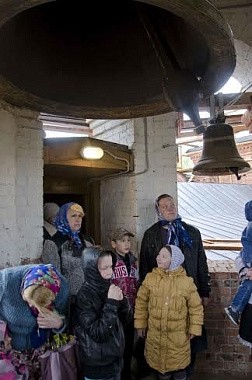 Затем для детей и родителей была проведена экскурсия по монастырю, завершившаяся на колокольне, где гости могли не только послушать звон, но и посмотреть, как исполняется послушание звонаря.