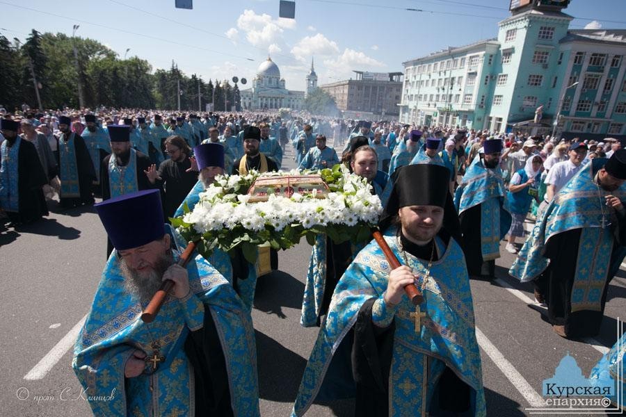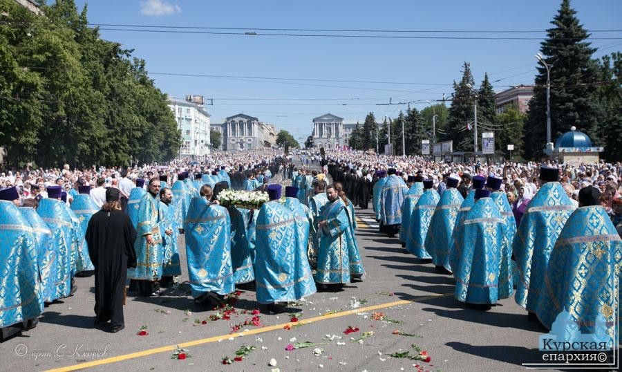 За богослужением молились игумении с сестрами из курских монастырей и тысячи православных верующих, которые прибыли из разных городов и сел России, чтобы помолиться Пресвятой Богородице пред Ее святой иконой «Знамение» Курской-Коренной и пройти вместе с курянами крестным ходом в Коренную пустынь.