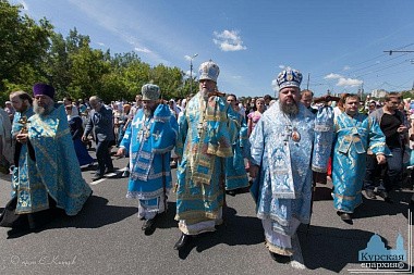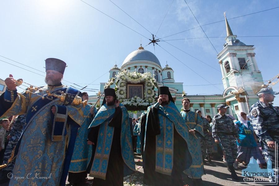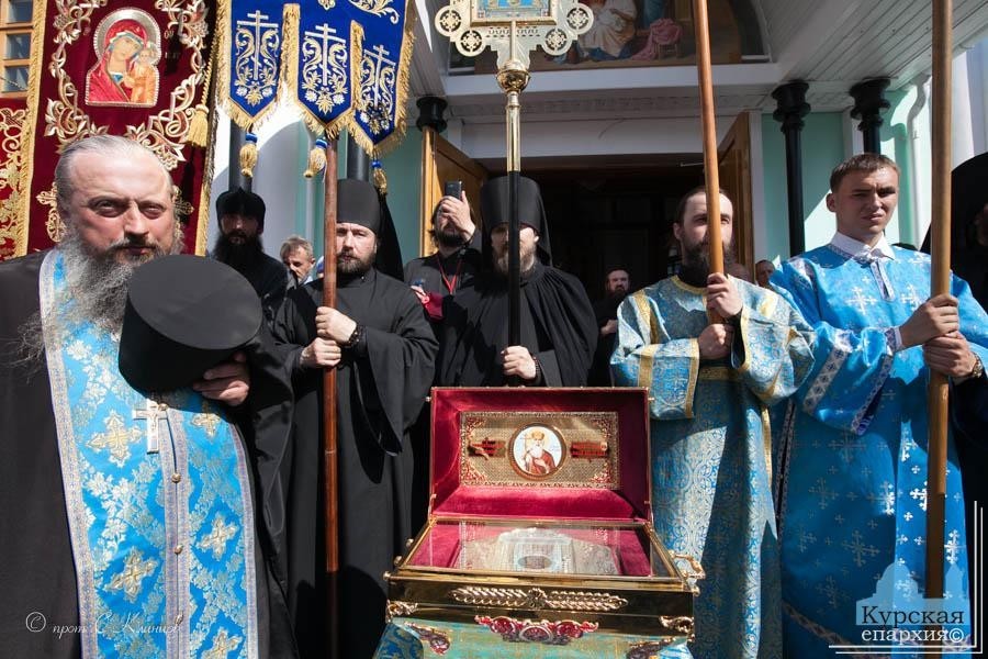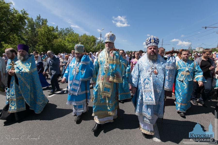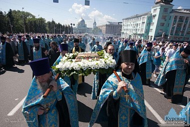 Перед началом крестного хода в Знаменском кафедральном соборе митрополит Курский и Рыльский Герман, епископ Железногорский и Льговский Вениамин и епископ Щигровский и Мантуровский Паисий в сослужении многочисленного духовенства совершили Божественную литургию.