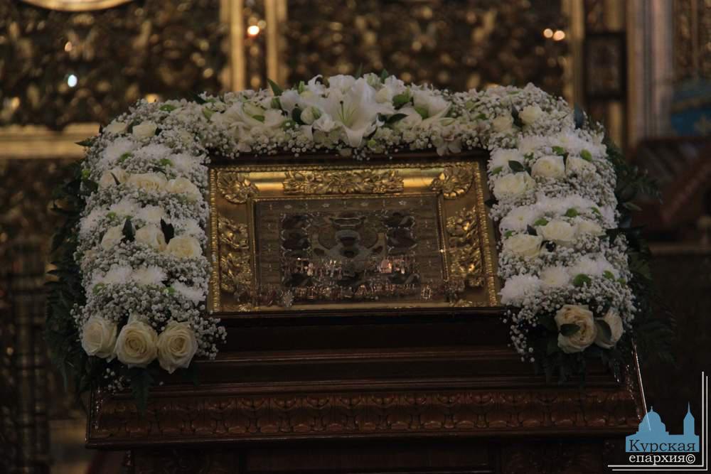 Божественную литургию в соборном храме монастыря возглавил митрополит Курский и Рыльский Герман, глава Курской митрополии в сослужении епископа Железногорского и Льговского Вениамина, благочинных церковных округов, настоятелей монастырей, храмов и братии Знаменского монастыря.