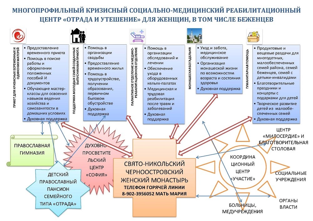 Занимаясь этой работой, кризисный центр при Свято-Никольском Черноостровском женском монастыре продолжает оказывать помощь и другим категориям населения, и развивает все направления прежние направления деятельности.