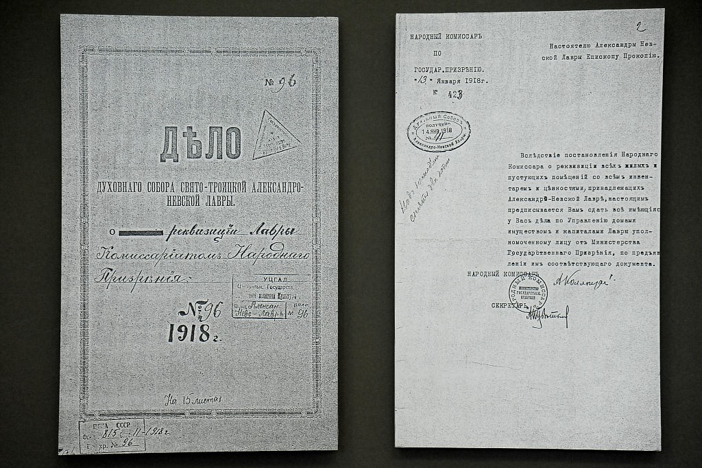Экспозиция рассказывает о кампании по вскрытию мощей, изъятию церковных ценностей. В блок об Александро-Невском братстве включен ценный экспонат – облачение одного из первых его руководителей протоиерея Леонида Богоявленского, позже – настоятеля Исаакиевского собора. В другом блоке представлены лица братии и настоятелей монастыря, вошедших в сонм его новомучеников. Завершающий стенд – современный образ обители – представлен иконой новомученика Льва Егорова, фотографиями нынешней братии.