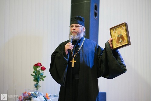 О давней дружбе отдела и обители рассказал ее насельник, главный редактор газеты «Духовный сеятель» иеромонах Феофил (Волик). Он подчеркнул, что библиотека много лет поддерживает монастырь в издательской деятельности и в выставочных проектах. Самый значимый из них – «"...Явить миру Сийское сокровище": Антониево-Сийский монастырь: из прошлого – в будущее». От имени настоятеля обители игумена Варлаама (Дульского) и братии отец Феофил вручил сотрудникам отдела «Русского Севера» икону преподобного Антония Сийского.
