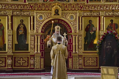 По запричастном стихе владыка Феогност обратился к собравшимся с архипастырским словом, посвященным главным духовным качествам св. Александра Невского – кротости, смирению и мужеству.